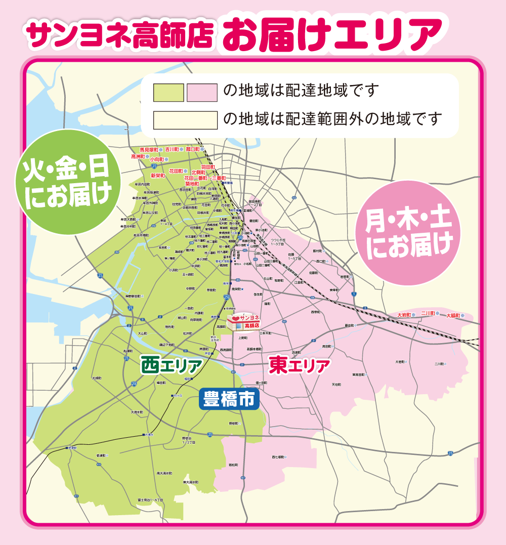 こちらにお住いの方は、ご入会時に配達曜日をご案内させていただきます。
